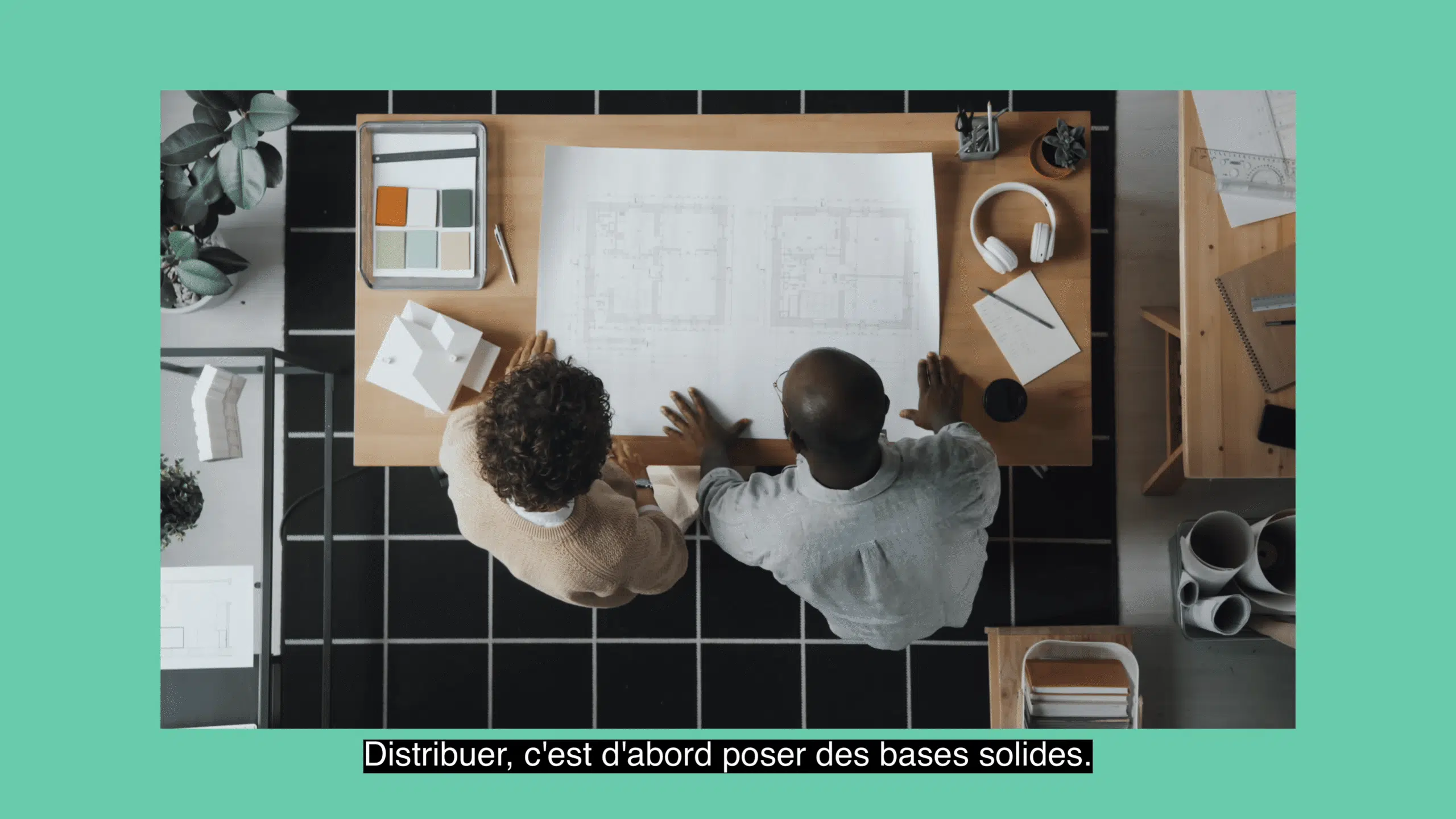 Compte tenu du timing projet, nous avons proposé un format vidéo composé à 100% d’images de stock. Une sélection d’images modernes et élégantes illustrant les enjeux métiers (réseau, implantation, négociation, commerce physique et digital), sublimées par une voix off masculine au timbre posé et rassurant.